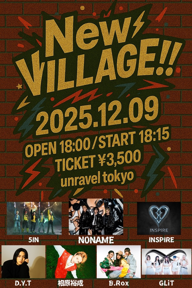 NNew Village!! SCHEDULE 2025/12/09(火) 18:00 - unravel tokyo 地図を表示 🎤⟡.· #LIVE情報 🗓️2025年12月9日(火)『NNew Village!!』 📍会場:unravel tokyo🕐OPEN 18:00 / START 18:15🎫TICKET ¥3,500 +1D(¥700) チケット購入⬇️ チケット購入はこちらから URLをコピーする 報告する